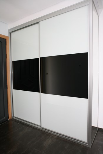Descripción : DISEÑO EN VIDRIO DECORATÃVO EN BLANCO Y NEGRO, CON COSTADO EN ESPEJO PLATA, A JUEGO CON PERFILES EN ALUMINIO PLATA MATE...