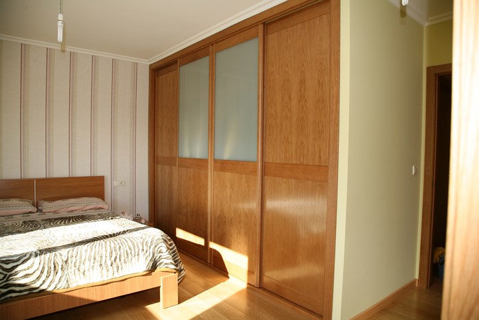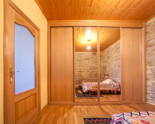 Descripción : CUATRO HOJAS CORREDERA, EN ACABADO ROBLE, DOS HOJAS ESPEJO PLATA Y DOS HOJAS CIEGAS, REMATADO A PARED RÚSTICA...
