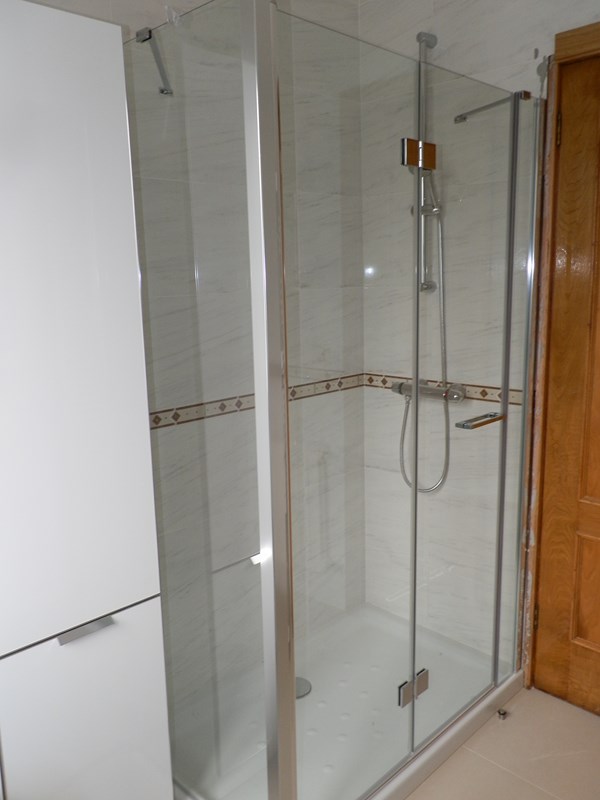 Descripción : FIJO LATERAL DE MAMPARA DE DUCHA DE OBRA, FABRICADA A MEDIDA, EXCLUSIVA Y ÚNICA...