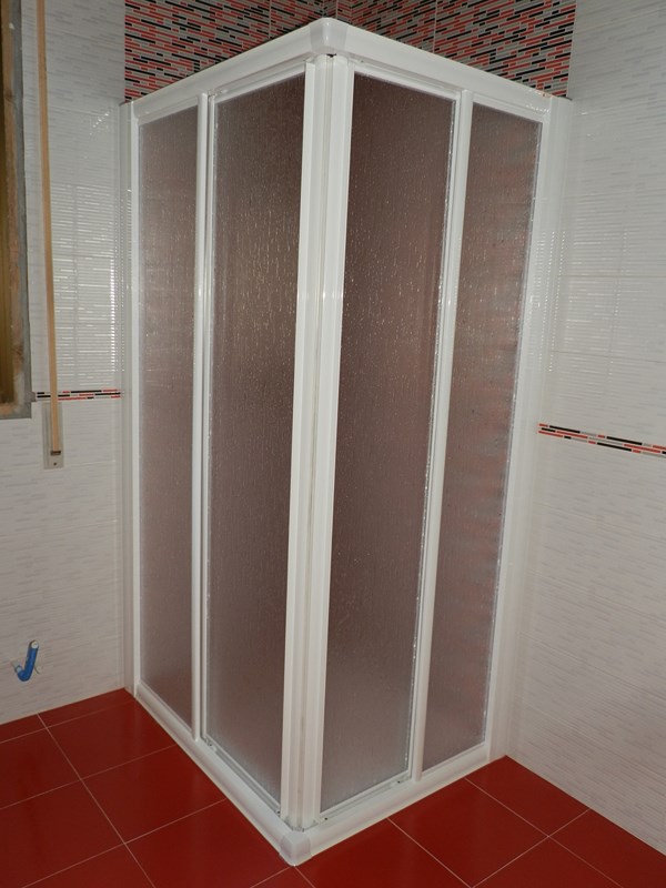 Descripción : FABRICADA EN ALUMINIO, ANGULAR DE DUCHA CON ACRÃLICO, EN ESTE CASO CON PERFILES EN LACADO BLANCO...